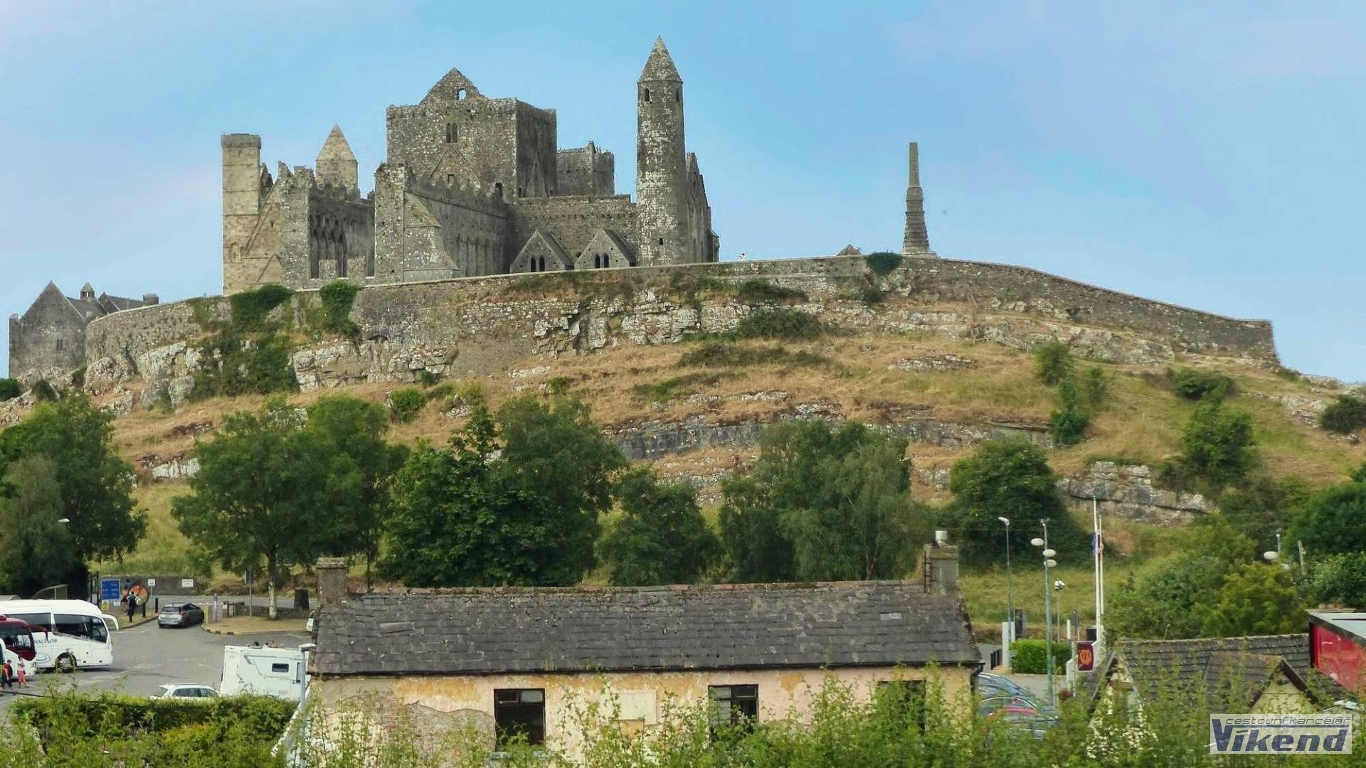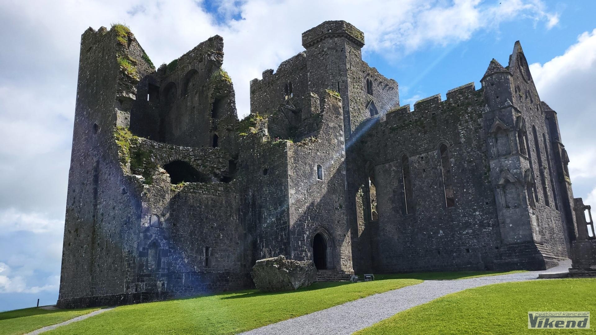 2.den: Návštěva působivého hradu Rock of Cashel (8€) v hrabství Tiperrary , panoramatická cesta přes průsmyk Vee Pass s kratší vycházkou, zastávka u zajímavého Lismore Castle a v blízkém městečku. Nocleh Killarney