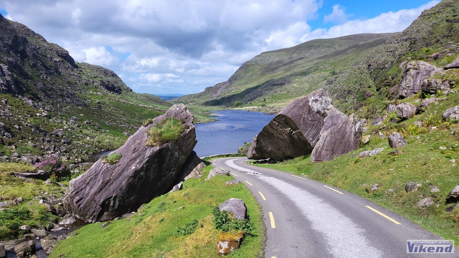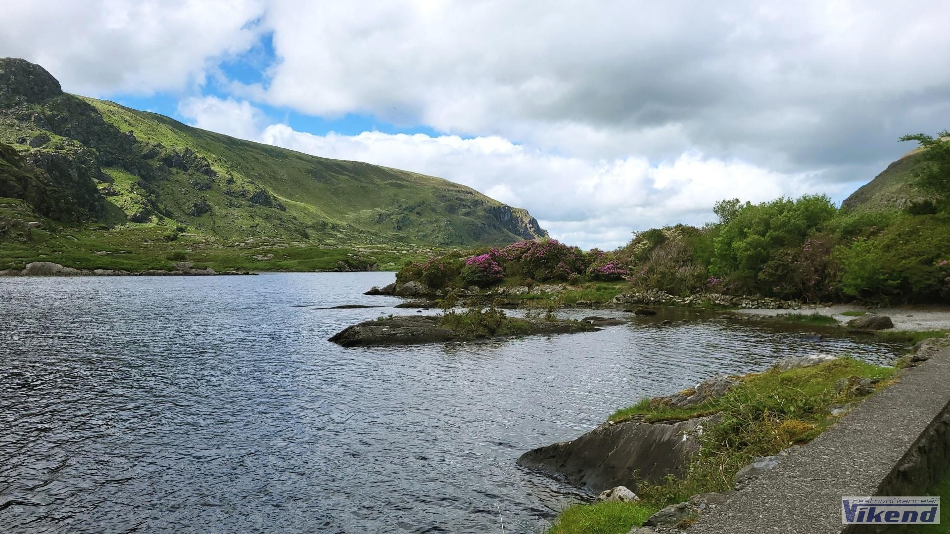 4.den: Busem a pěšky po silničce do průsmyku Gap of Dunloe a turistika v nádherné horské oblasti protkané mnoha jezery a jezírky. Různě náročné varianty turistiky, od nejlehčích po opravdu vydatné. Nocleh Killarney