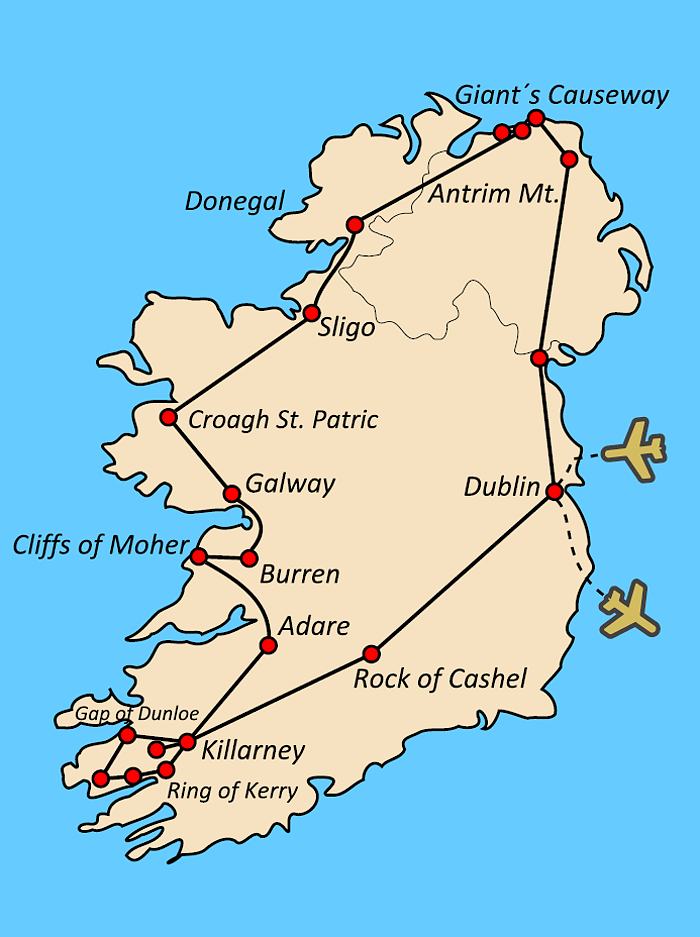 Připravený okruh Vám svou delší částí představí to nejhezčí ze samostatné Irské republiky, na dva dny však také zavítáme i do té menší části ostrova, do Severního Irska, které je spolu s Velkou Británií součástí Spojeného království - nutný cestovní pas a registrace ETA, viz níže.